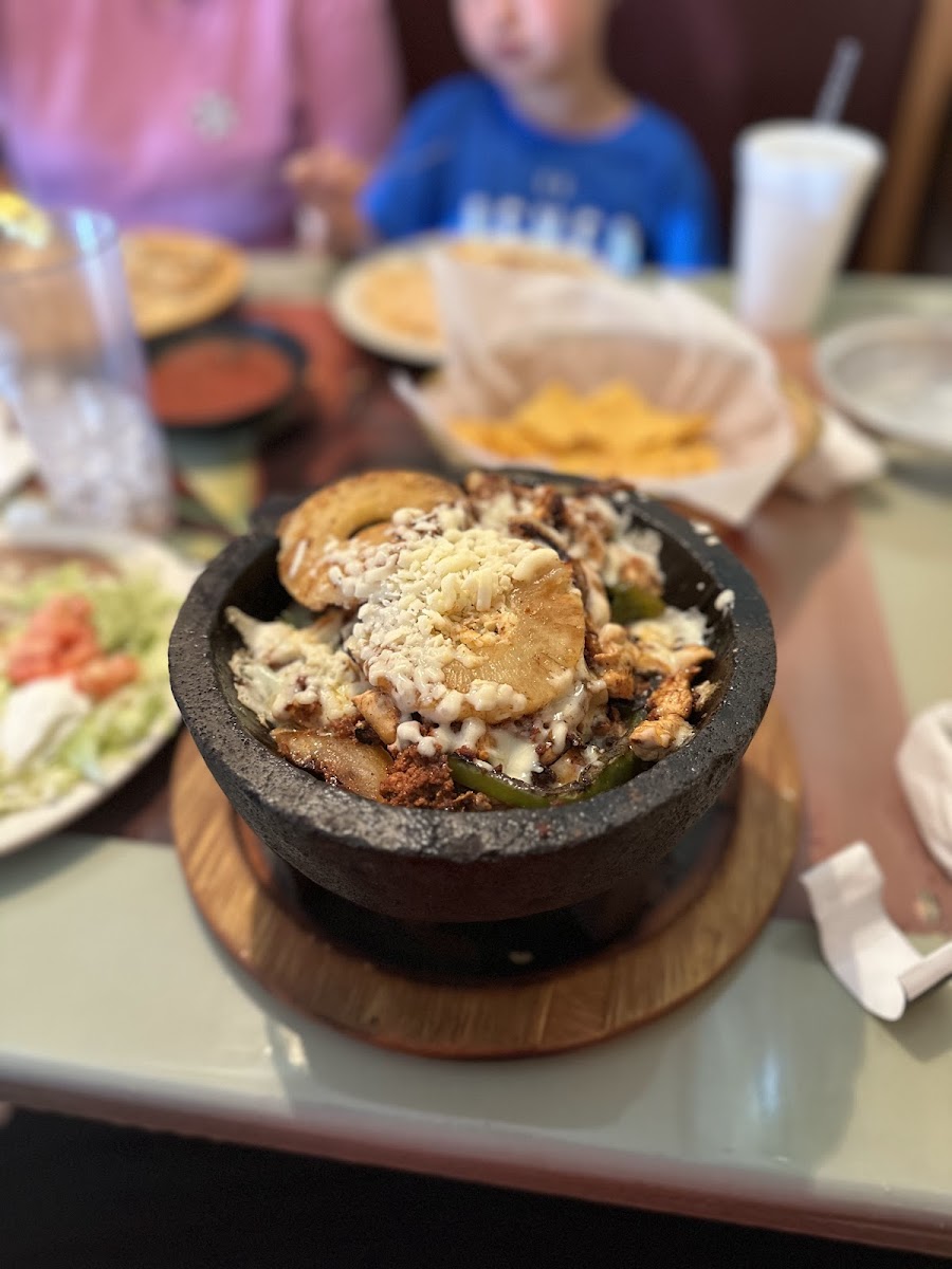 We initially arrived at 2:30 PM to avoid lunch & supper crowds knowing that parking can be hard to find. As soon as patrons left took pictures of murals and booths. The personalities of Kiko’s staff is sincerely friendly and courteous. All of which help create pleasant dining atmosphere. The staff works very well together. It was clean when we entered and exited. They do not wipe food off rather they clean the tables. The tea is actually pretty good. Of course we had chips and salsa which I forgot and left behind. Salsa was a little too warm for my husband though he liked the taste. It’s better than most and its not watery. Ordered appetizer the Spinach Dip. First time trying Spinach Dip. Was excellent of course anything in good cheese taste great. We each ordered Molcajete! A lava bowl full of steak, chicken, shrimp, green bell peppers, onions, tomatoes, chorizo and cheese! Hopefully I remembered everything in it. And it came with plate of salad and sour cream, guacamole, refried beans sprinkled with cheese, and rice. Needless to say we have found our favorite Mexician Restaurant. We’ll eat leftovers for supper tonight. Can’t believe I left the salsa. Hope y’all try and enjoy Kiko’s too! This Restaurant is located near couple of schools which prohibits them from selling alcoholic beverages.